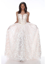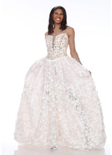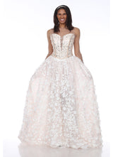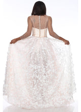 Skirt made of 3D off white flowers with pockets on the sides. Lining is three layers of organza and a short silk lining. Hem is horsehair trim