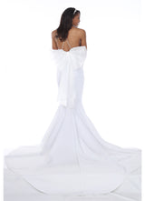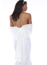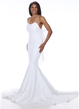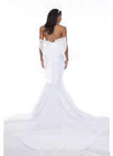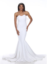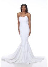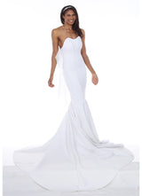 Mermaid style. Made out of stretch material covered tulle with built in bra. Boning on all seams.